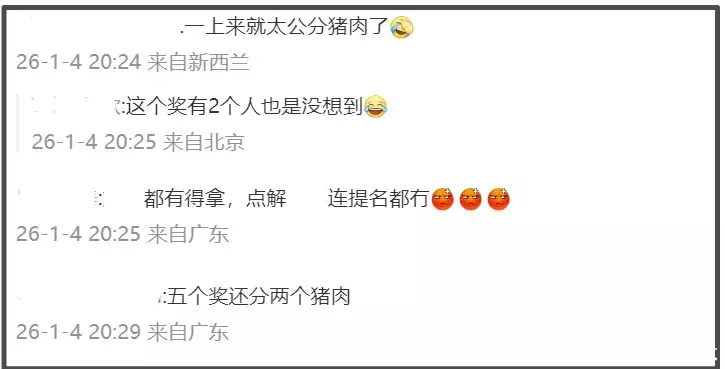 等到新人奖项颁布,上来就是一个双黄蛋,TVB立马就被吐槽分猪肉。